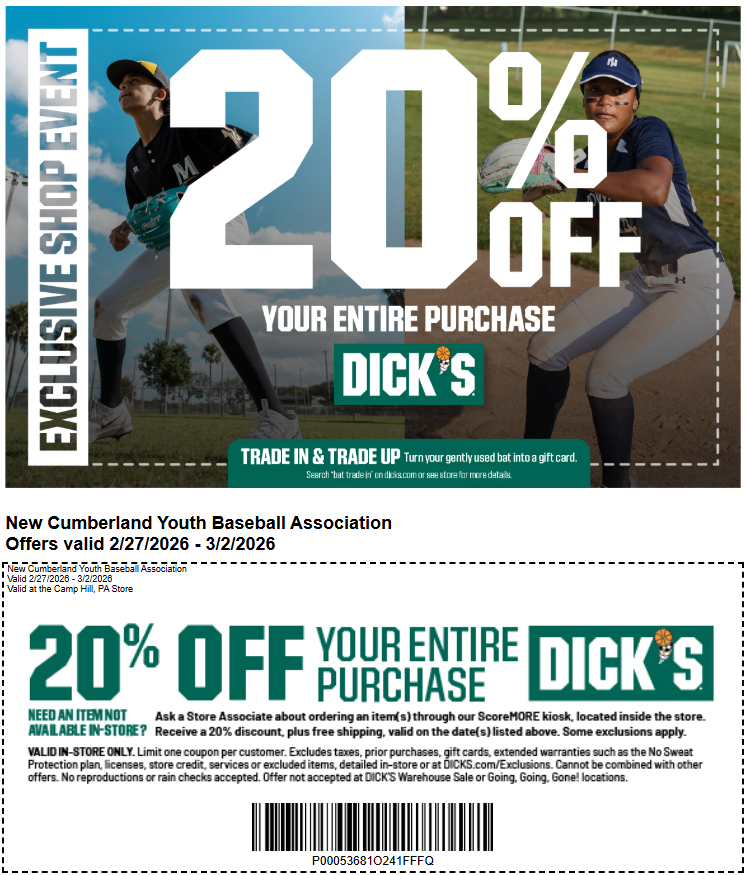 New Cumberland Youth Baseball has been a mainstay for both the community and our youth since 1946, and we teach the merits and benefits of teamwork, competition, and sport to roughly 300 players each year.